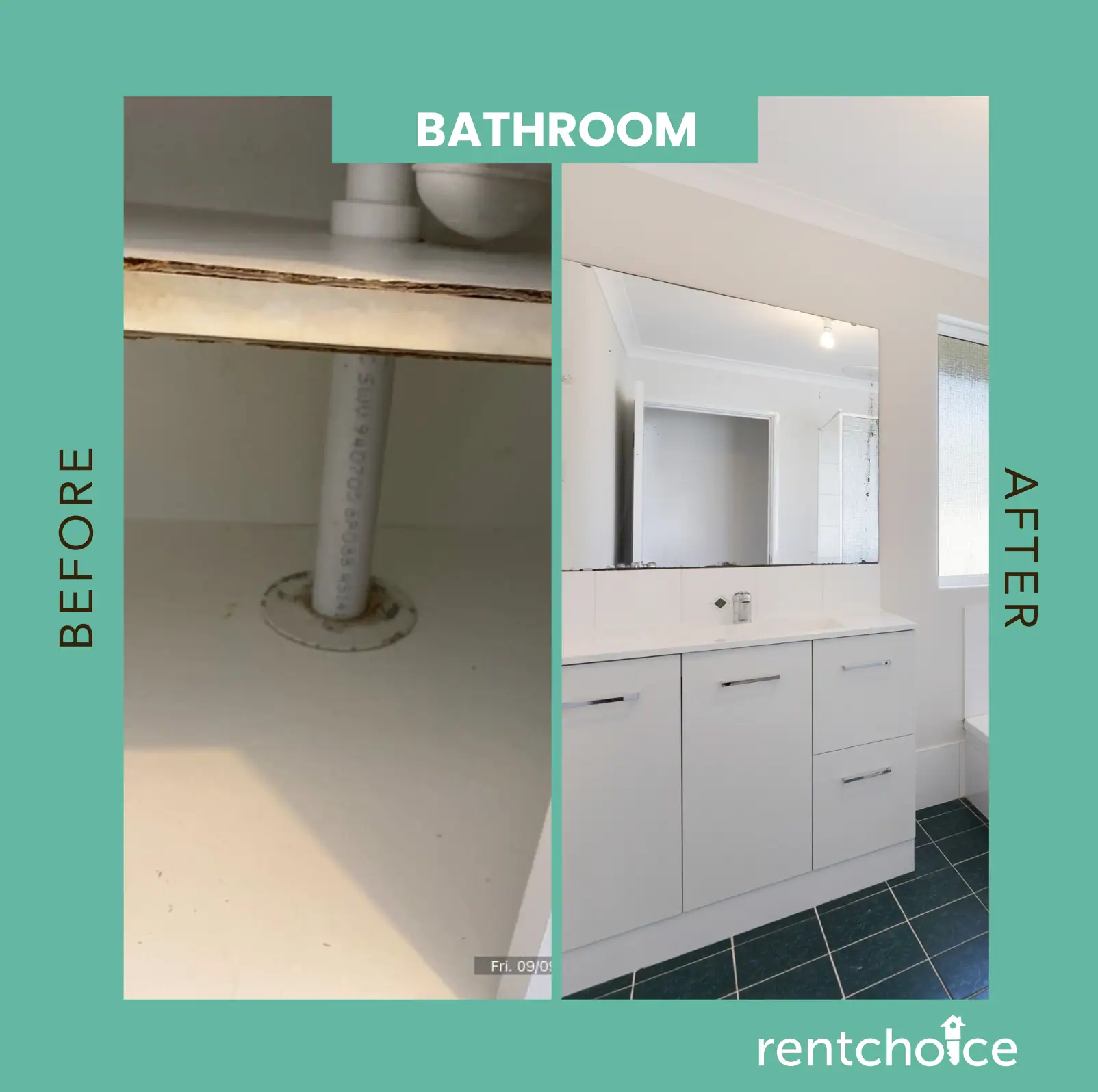 Step 3: Interior renovations commenced once the property was thoroughly dried. We coordinated replacing the bathroom vanity, laid new carpets and floors, and completely repainted the interior. The shower grout was redone, and the bath was expertly resurfaced. Simultaneously, outside work was initiated, including replacing gutters and eaves, a reticulation box, and a thorough garden tidy-up.